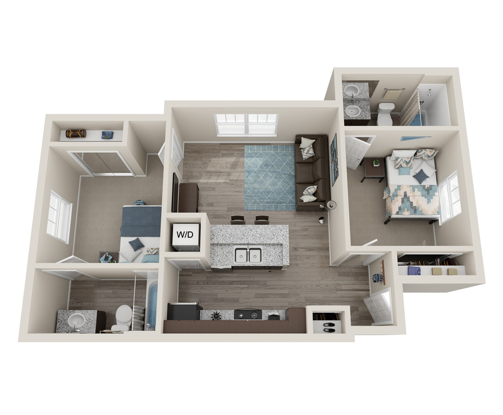 Discover spacious living with modern comforts in our 2 Bed, 2 Bath Garden apartments, perfect for students seeking privacy and convenience near campus. Enjoy fully furnished spaces and premium amenities designed for your lifestyle.