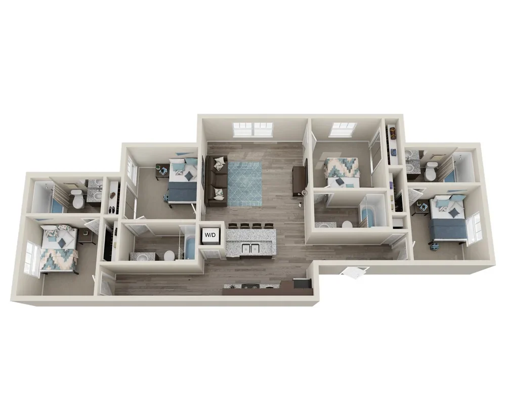Discover spacious, modern living in our 4 Bed, 4 Bath Garden apartments, perfect for students seeking privacy and convenience near campus. Enjoy fully furnished 1,300 sq ft units with private bathrooms, lockable bedrooms, and premium amenities designed for your vibrant student lifestyle.